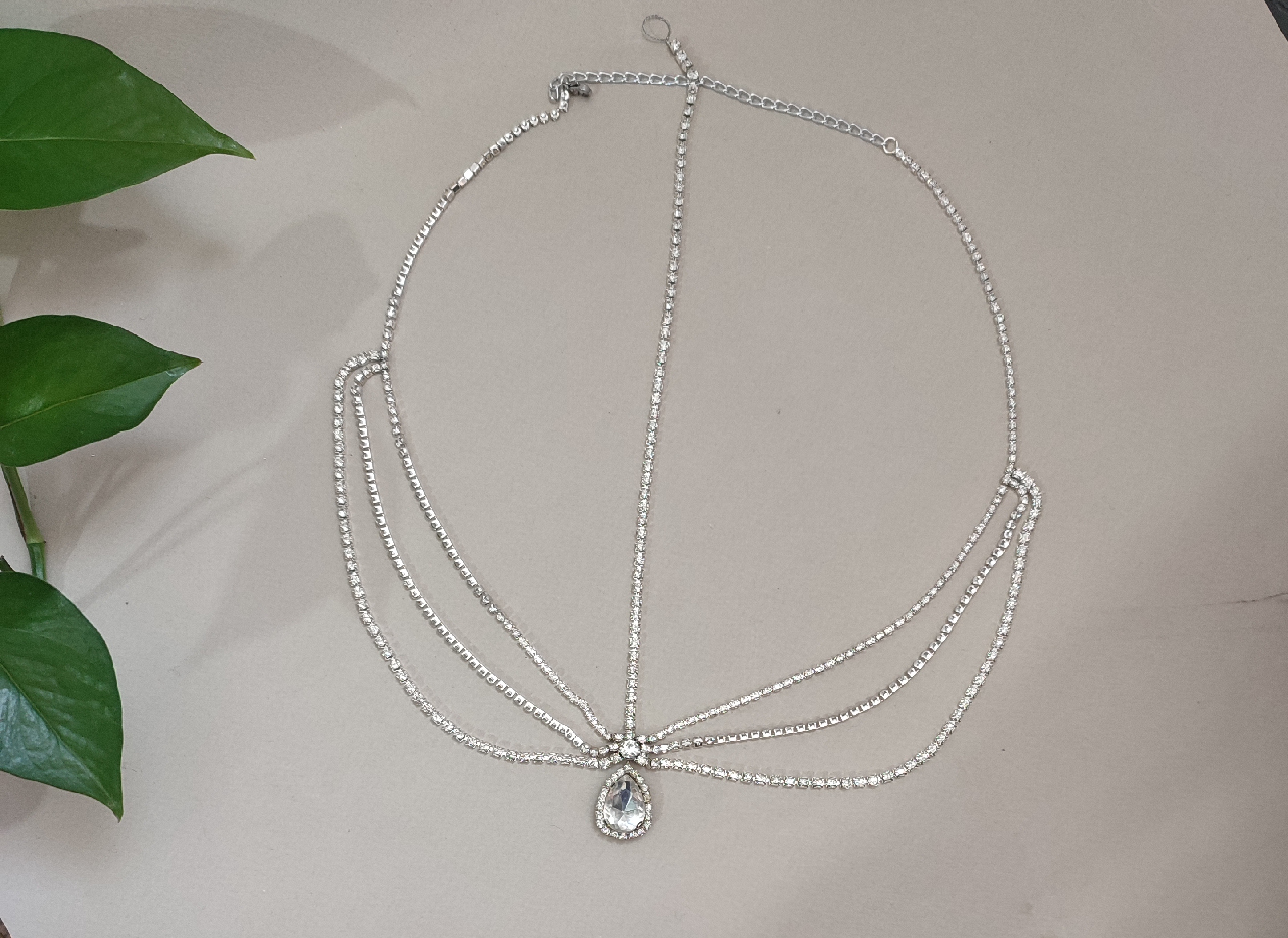 این سربند سه ردیف در جلو نگین کار شده و در انتهای محصول قفل و زنجیر رنگ ثابت هست.بلندی زنجیر را میتوان به راحتی با قیچی ،کوتاه کرد.این محصول لحیم شده و مقاوم است،ما پشت محصولات را چسپ نمیزنیم.نگین وسط را میتوان با نگین های رنگهای دیگر تعویض کرد.و چون انتهای محصول باز هست،برای هر نوع صورت قابل تنظیم است.به راحتی با هر نوع گیره مو ثابت میشود ونگین دور تا دور سر را میگیرد.