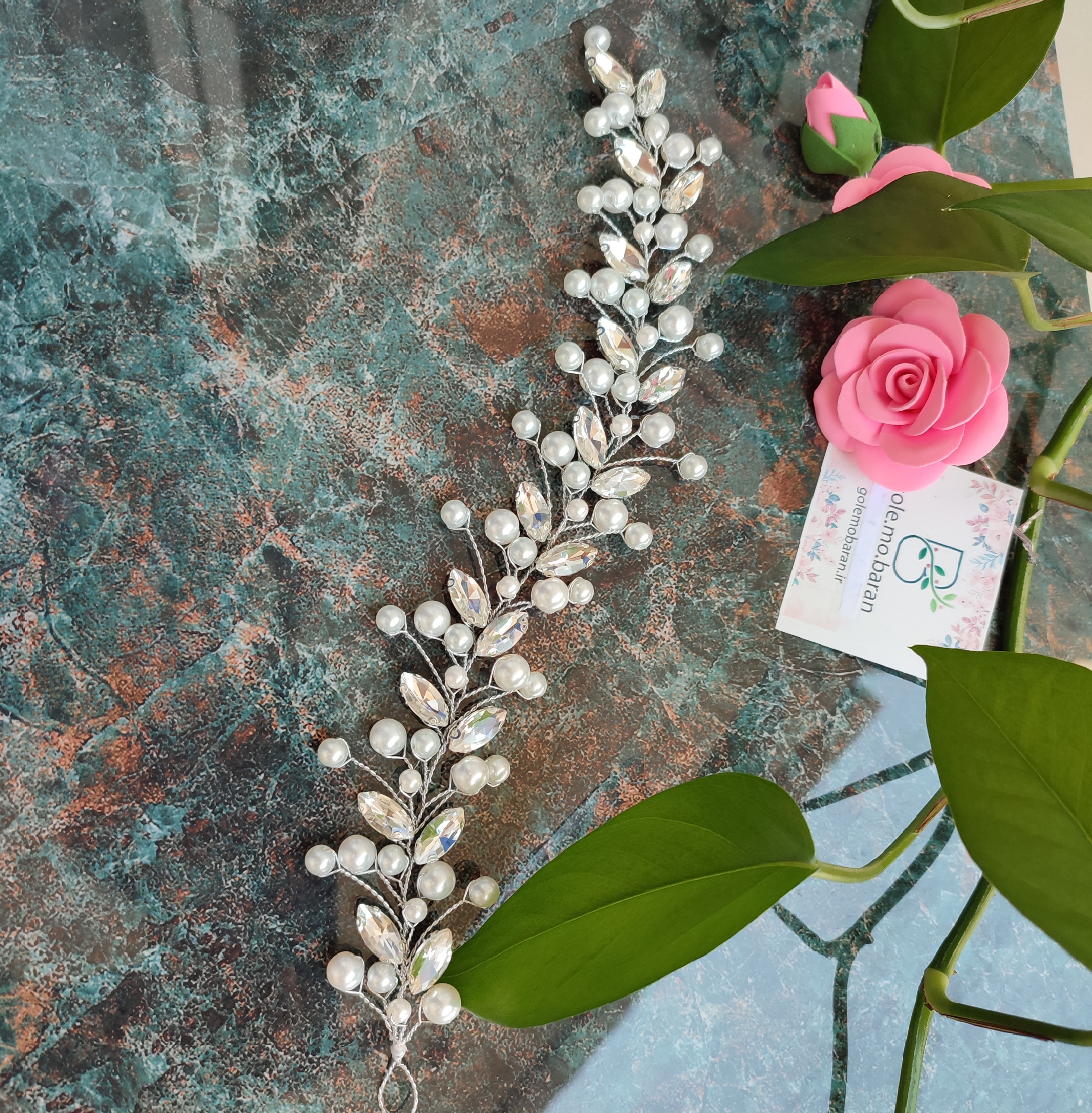 ریسه مو کوتاه مروارید سفید و نگین مارکیز اصلی طول این کار در بلندی مختلف قابل سفارش است. حتی میتوان دو تا از این کار را برای دو طرف سر استفاده کرد.طول این کار میتوان بلند تر یا کوتاه تر سفارش داده شود و رنگ نگین ها را میتوان تغییر داد.