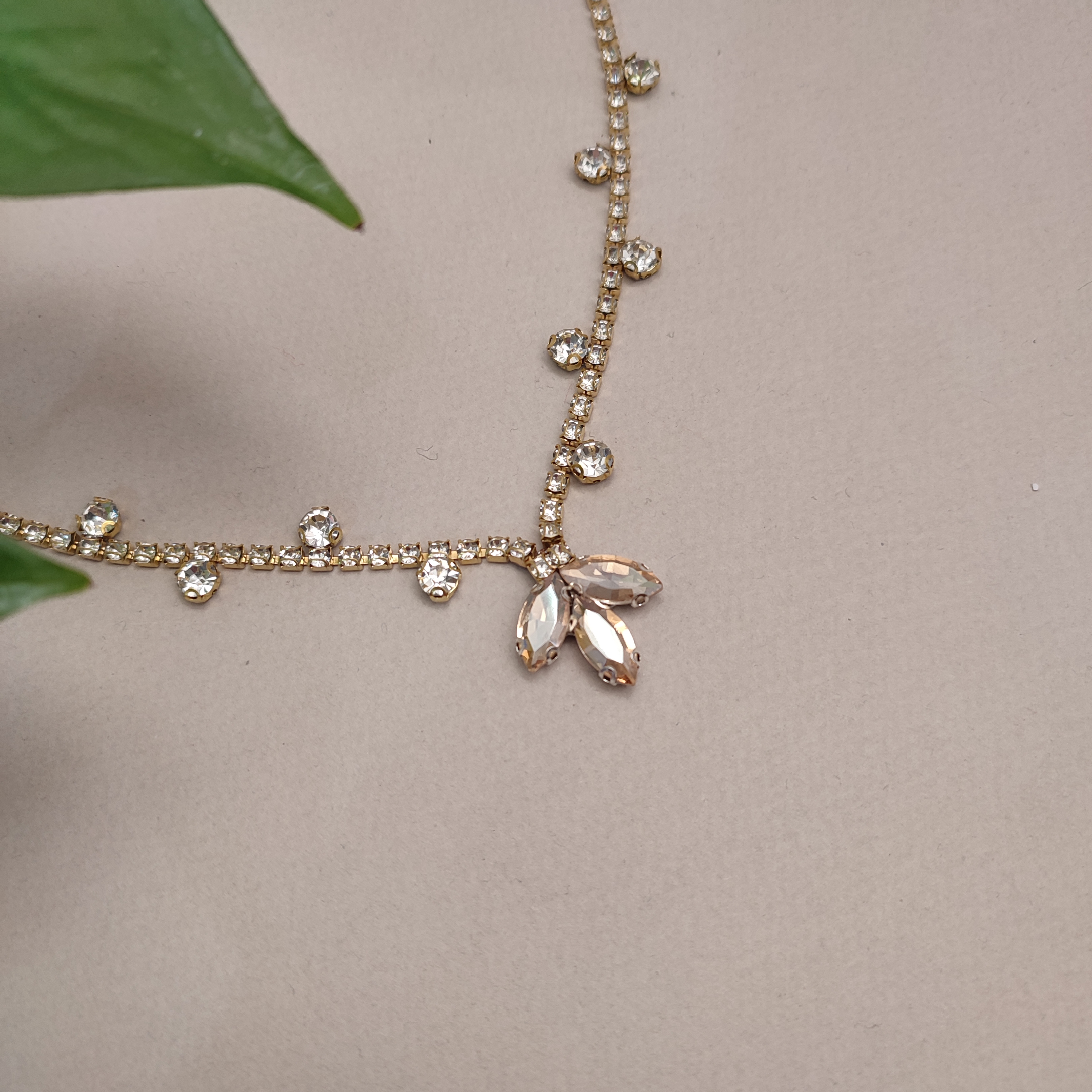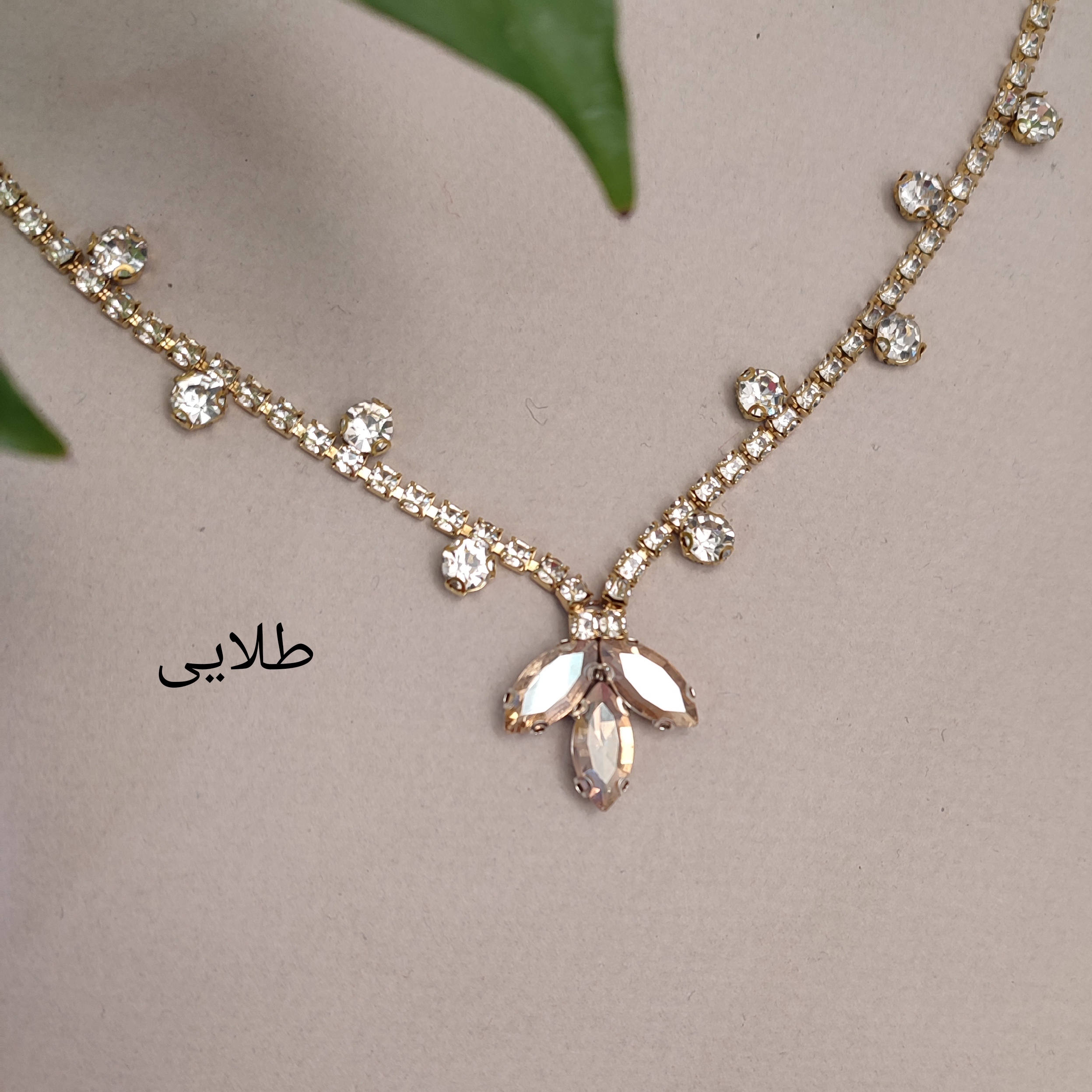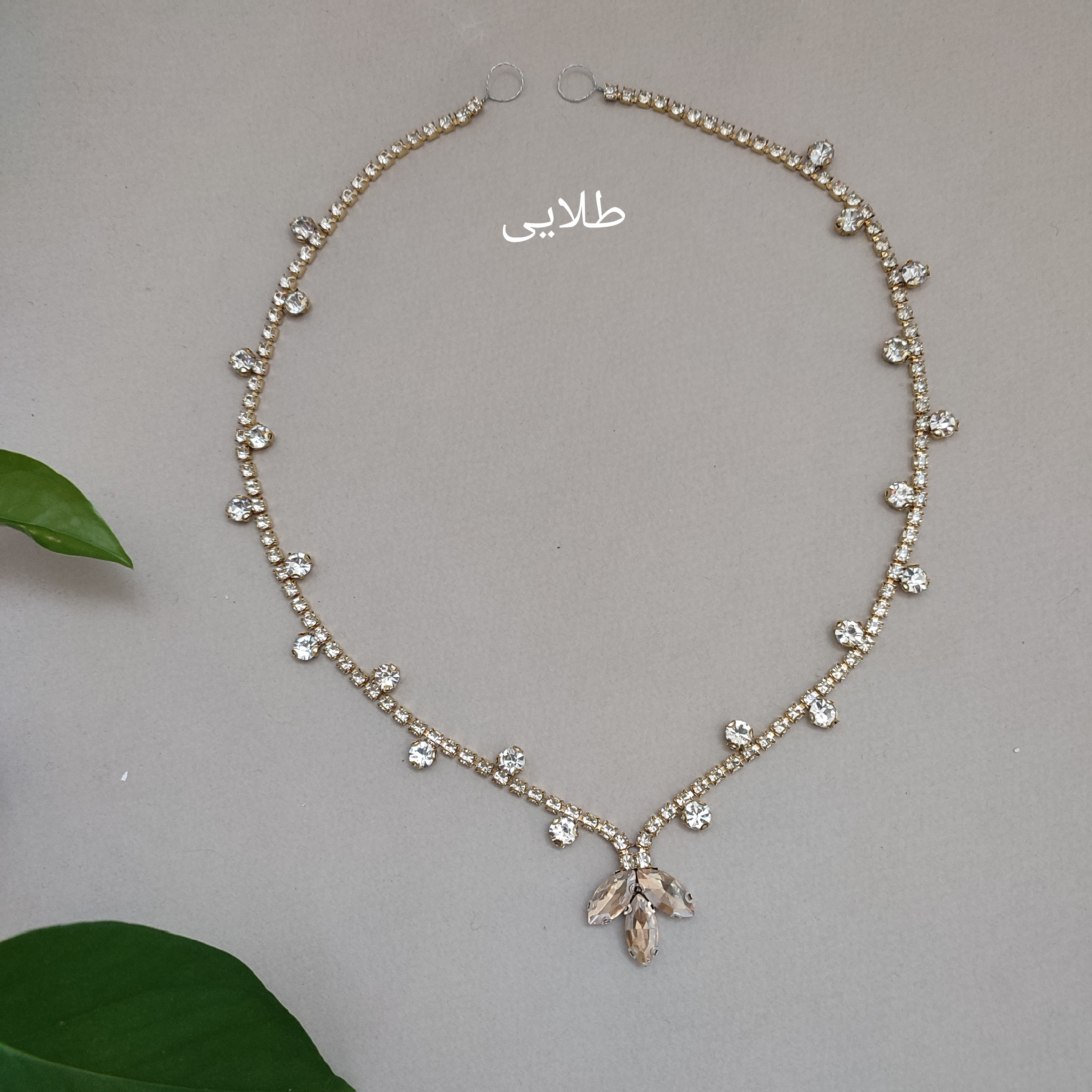 این کار را به سفارش همتا ساختم،هم زیبا و درخشان ه و هم ساده و لحیم شده و مقاوم.دو طرف میشه با شانه یا با حلقه باشد،طبق کاربرد و سلیقه شما.بلندی کار 47 سانت است و تماما سنگ اصل است.رنگ طلایی این محصول ،نگینهای سفید دارد و فلز دور نگین طلایی هستند و سه نگین وسطی ،رنگ شامپاینی هست.