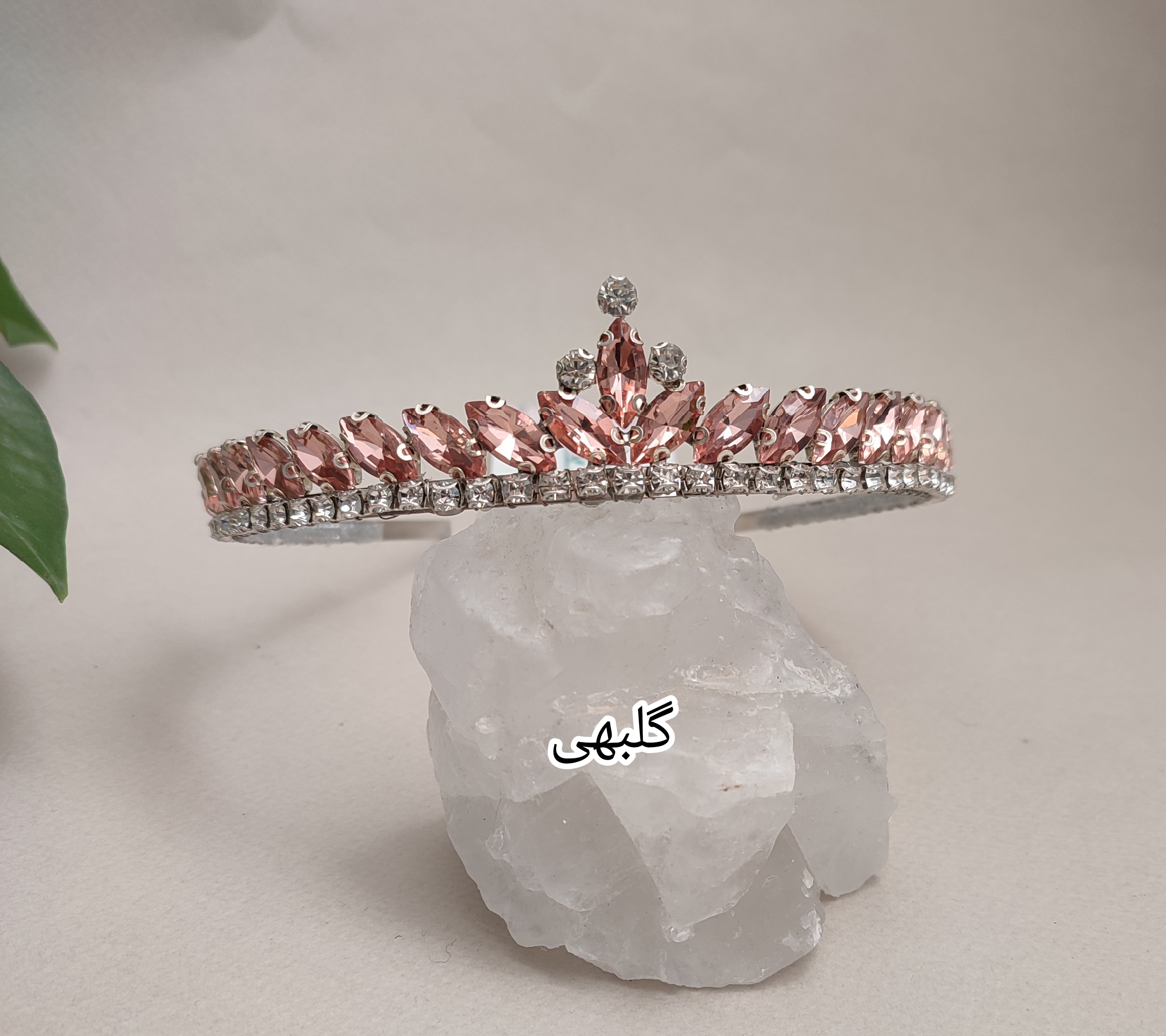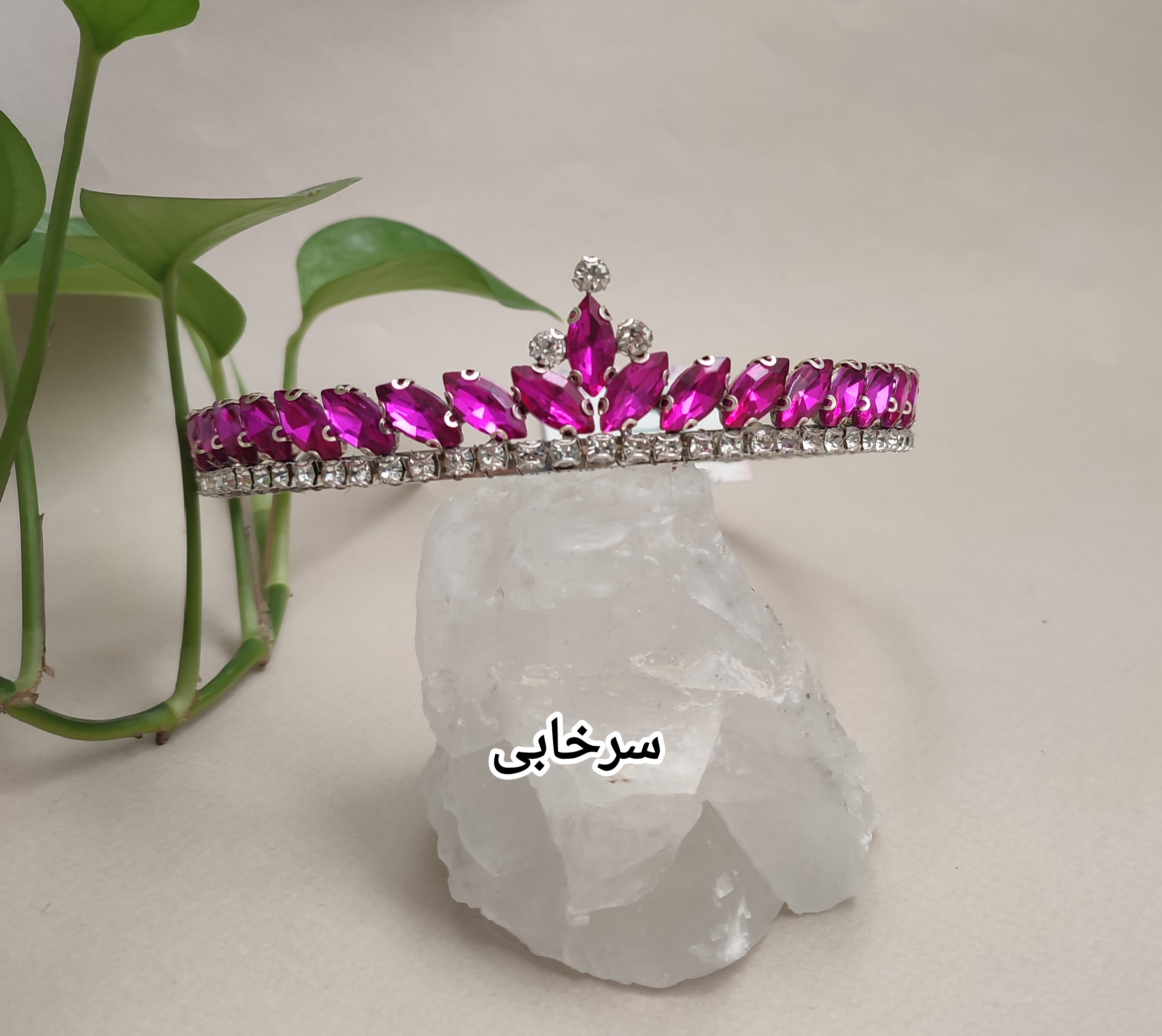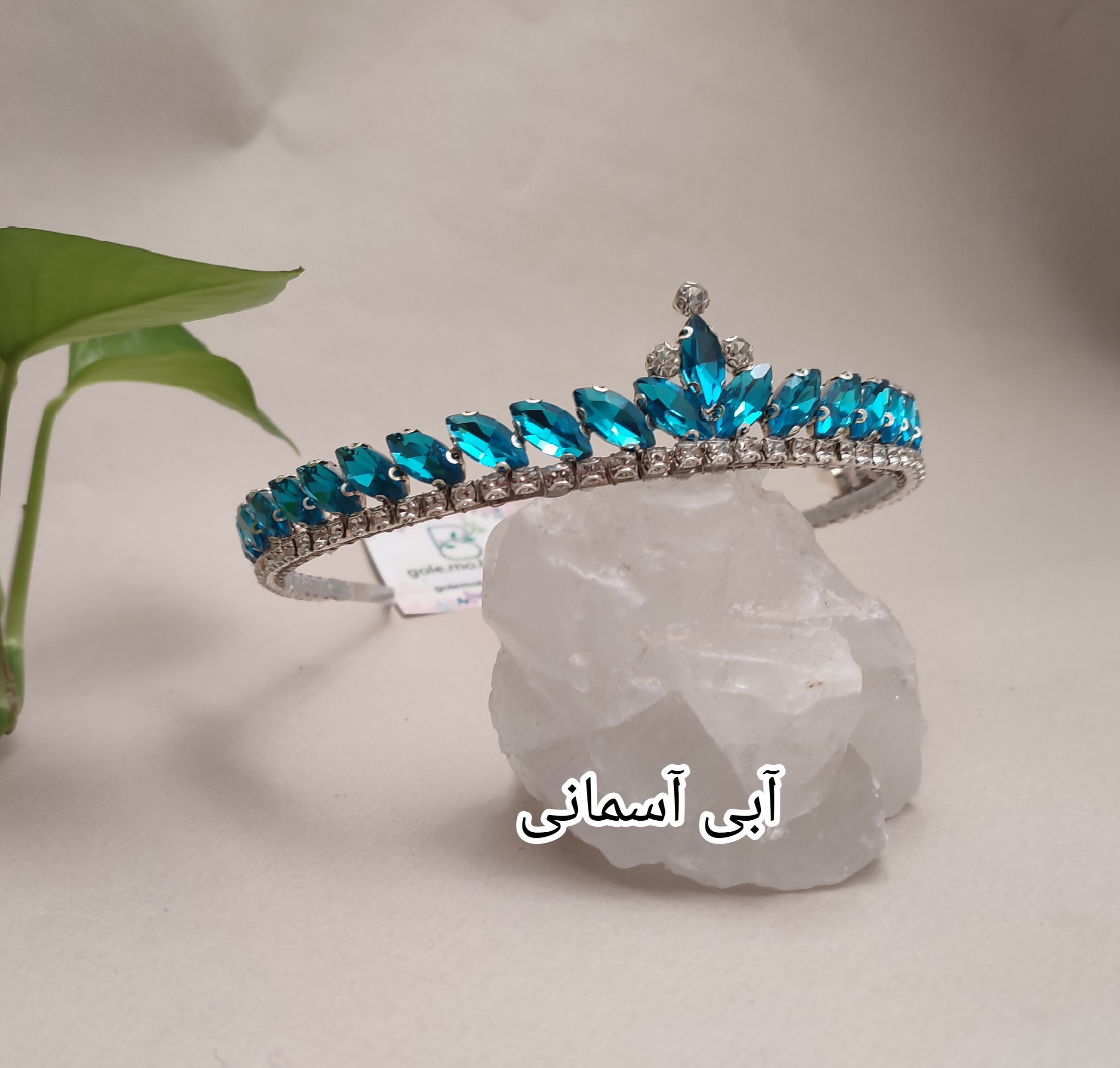 این تاج کوتاه در رنگهای مختلف قابل سفارش است،لحیم شده و مقاوم است و نگینها همگی اصلی و از جنس شیشه است.
