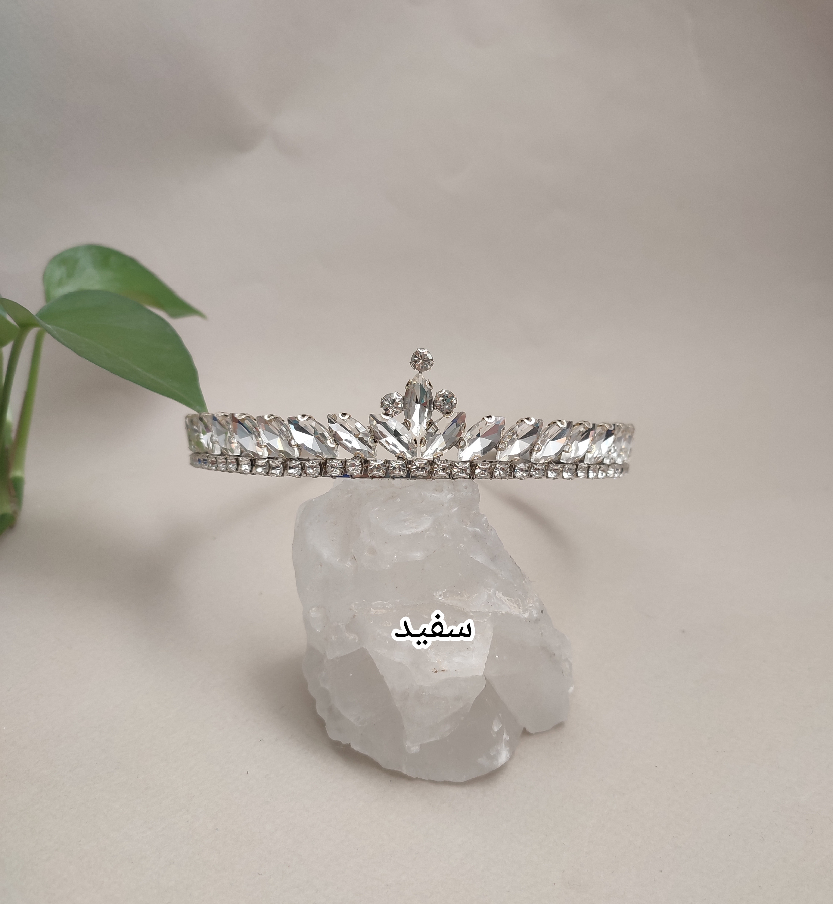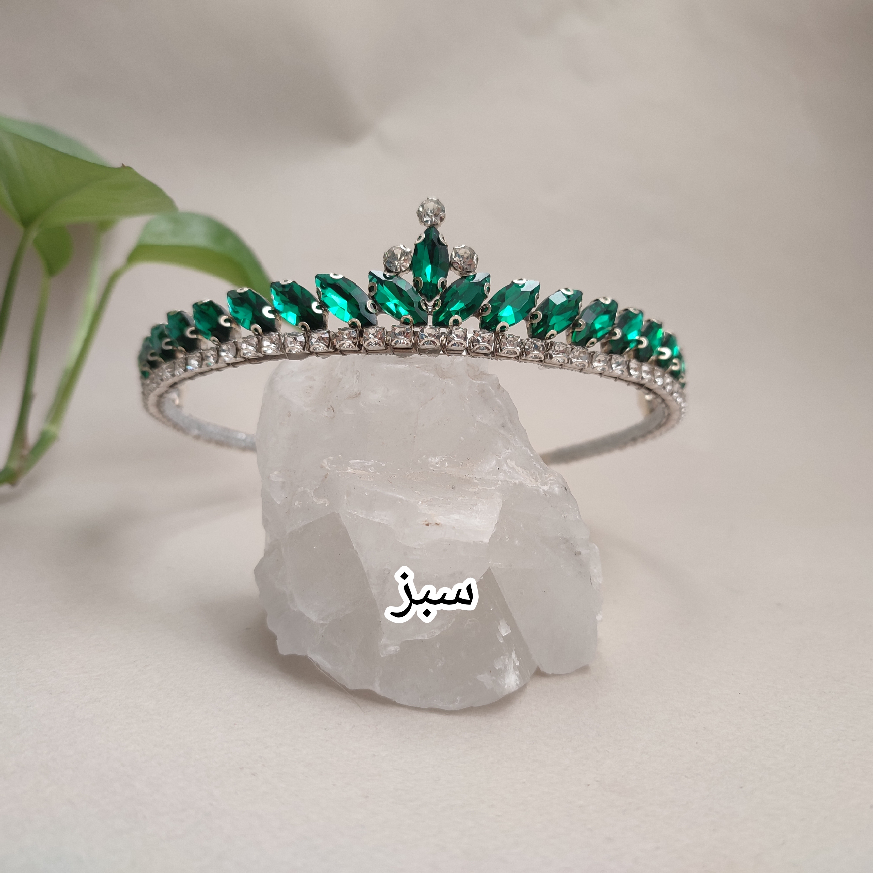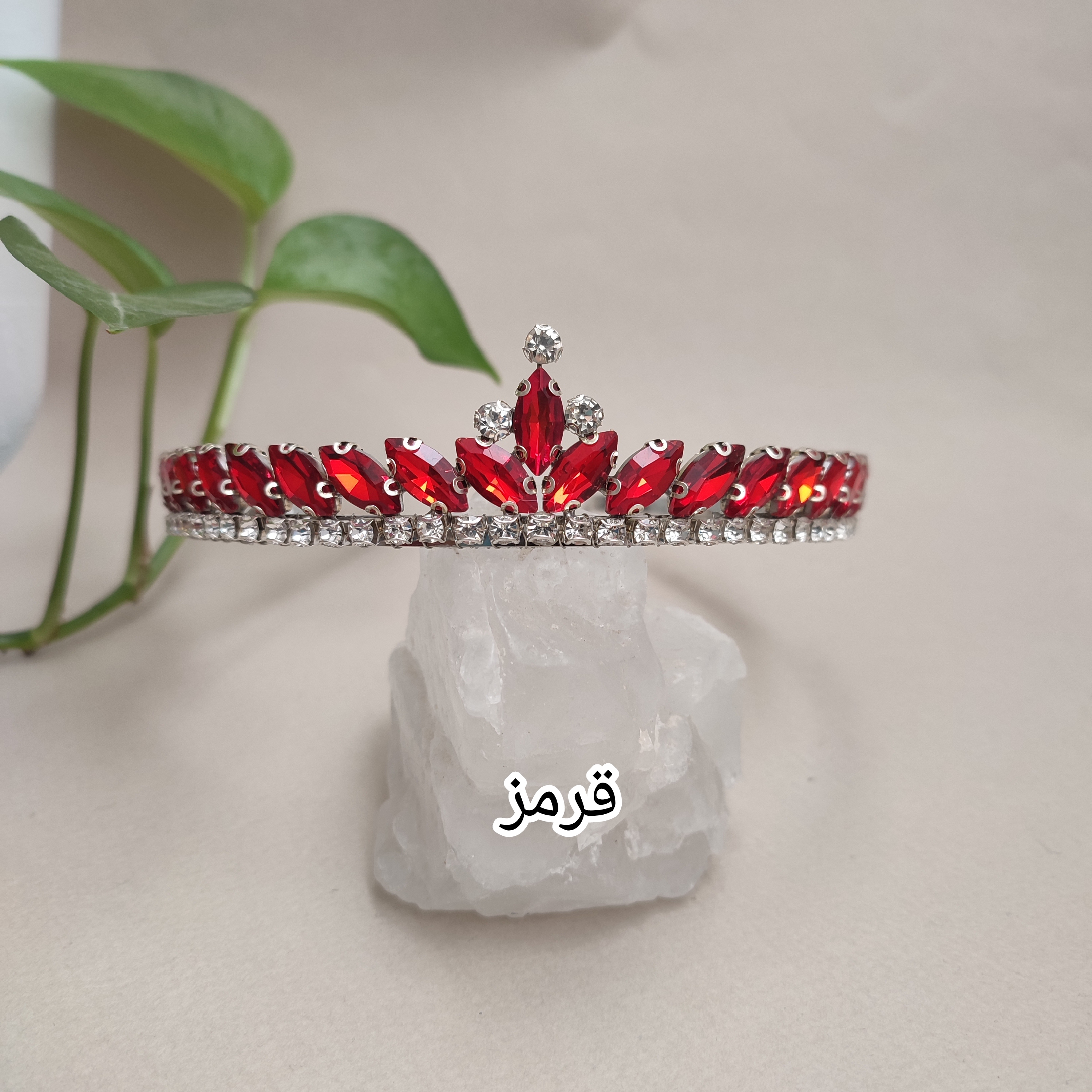 این تاج کوتاه در رنگهای مختلف قابل سفارش است،لحیم شده و مقاوم است و نگینها همگی اصلی و از جنس شیشه است.